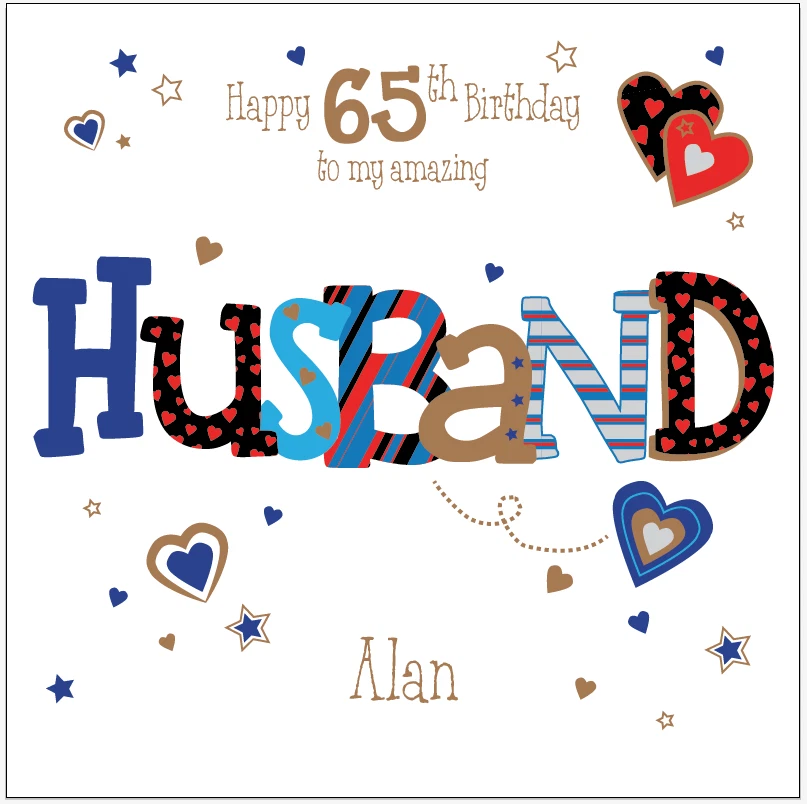 Personalised 65th birthday card husband boyfriend Any Age/Name