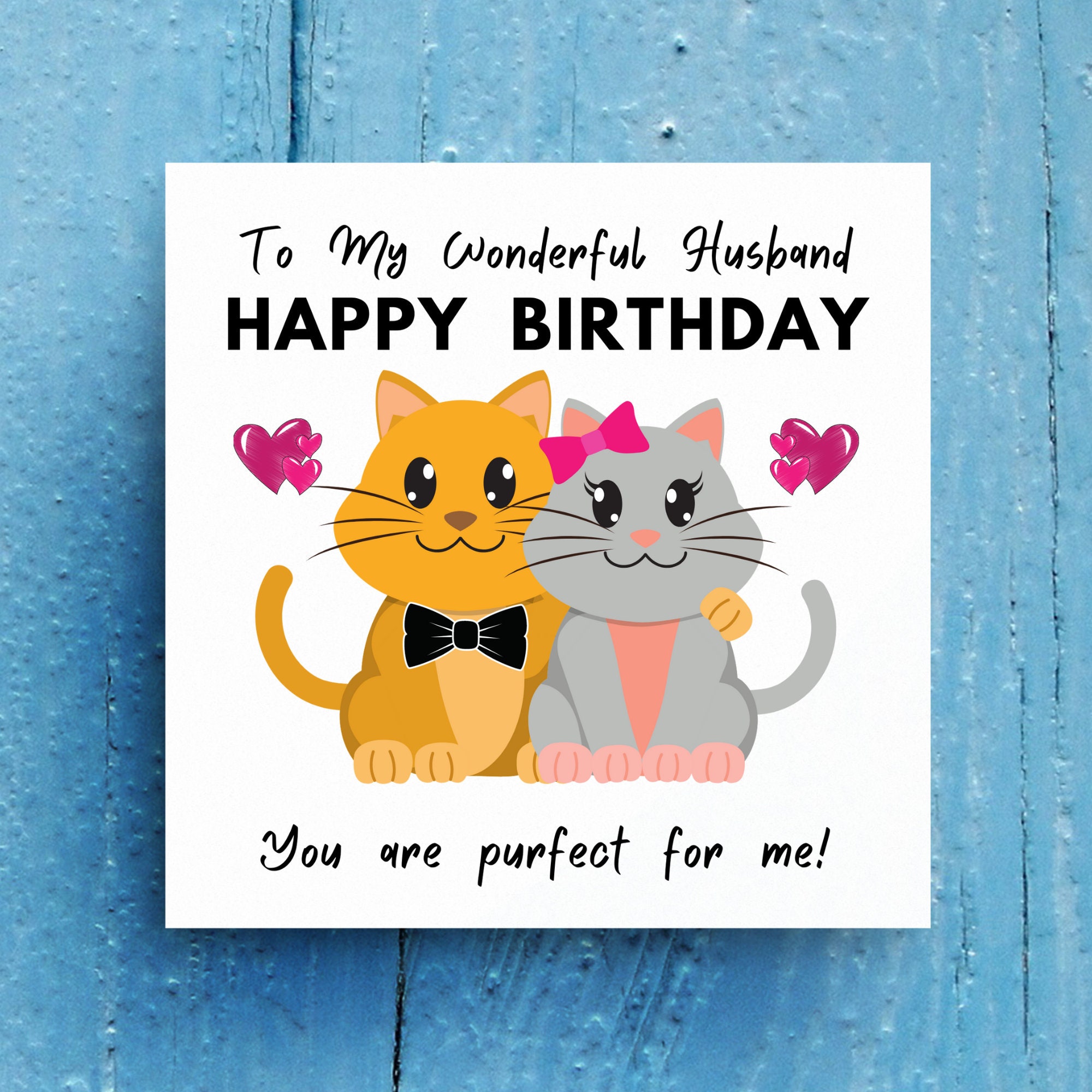 Cute Cats Happy Birthday Card Personalised for Husband, Cute