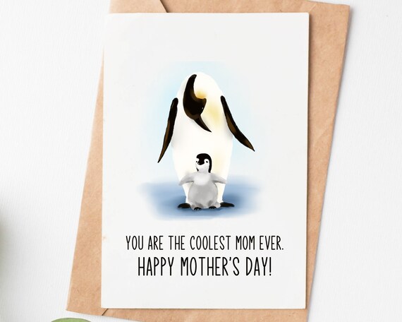 Mom Birthday Card coolest Mom Cute Penguin Card, Card for Mom
